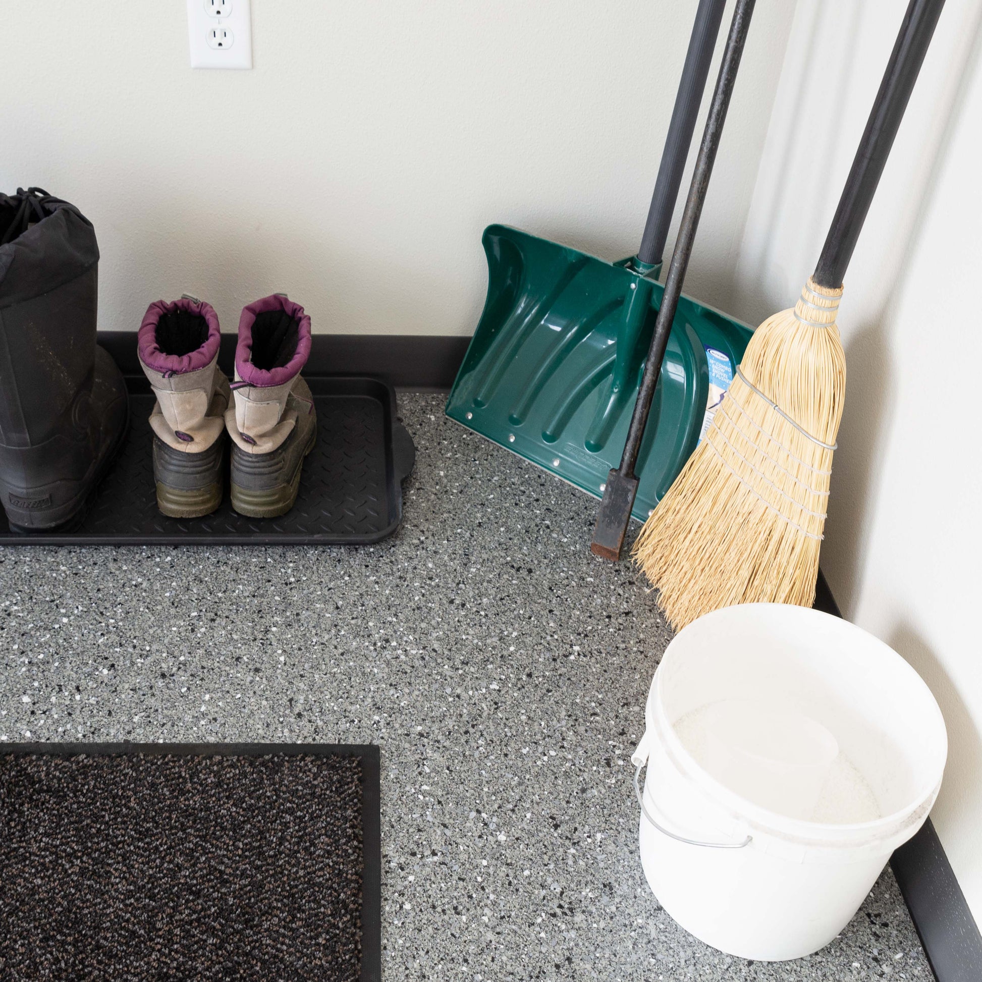 Slate is a captivating blend that provides a dark and neutral flooring option. Inspired by the timeless beauty of natural slate, this mix combines brown, black, grey, and white accents to replicate the sophisticated look of polished stone surfaces. Like all blends in the Stone collection, Slate features hybrid-sized flakes that create an aggregate-like appearance, reflecting the depth and character of authentic stone. Perfect for adding a refined touch, Slate brings versatile elegance and subtle darkness to any space.