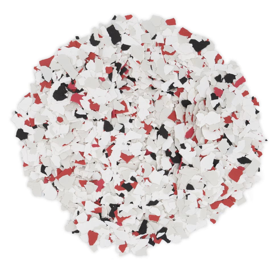 Talon delivers a striking floor coating with cool white tones and bold red accents that command attention. This dynamic color combination creates visual depth and modern appeal, ideal for spaces requiring both sophistication and impact. The flake system provides enhanced durability and aesthetic dimension, while the contrasting palette ensures your floor becomes a design statement. Perfect for commercial or residential applications where distinctive style meets reliable performance.