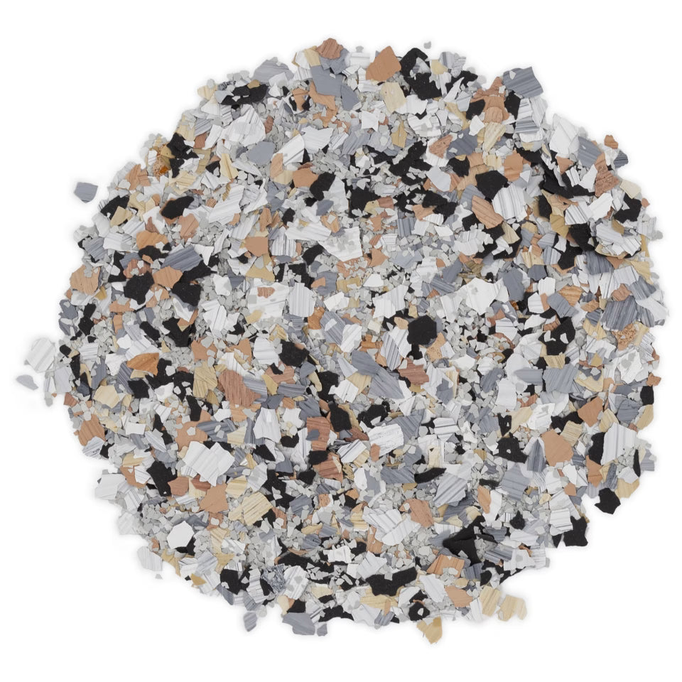 VARIEGATED FLAKE COLORS, INCLUDING THE MARBLE AND HYBRID TERRAZZO